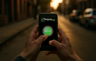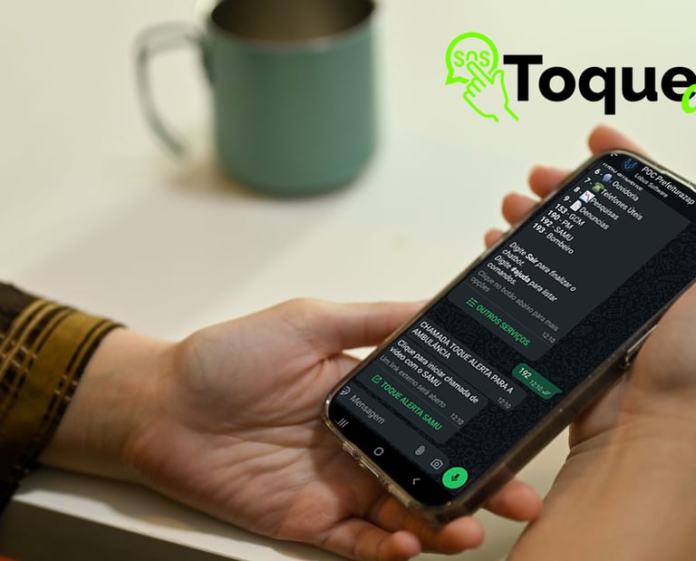 Ao ativar o Toque Help, o usuário envia um alerta instantâneo para contatos de emergência com localização, áudio e vídeo em tempo real, garantindo resposta rápida em momentos críticos.