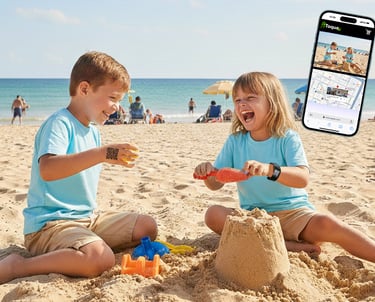 São tattoos temporárias que, ao serem escaneadas, conectam quem encontrou a pessoa ao responsável em tempo real, com localização e comunicação instantânea, ideais para crianças, eventos e momentos de risco.