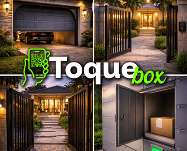 O Toque Box é um dispositivo que permite abrir 1 ou 2 portões pelo app da Toque AI, com um toque. Funciona como controle remoto digital e também libera acesso durante chamadas ou visitas.